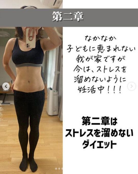 大減量というダイエットに成功した今、__nondiet__さんのダイエットは第2章、「妊活」というキーワードも追加されました。でも、ダイエットと「妊活」はやることは一緒だったと言います。健康的な食生活、質のよい睡眠などの習慣はそのままに、筋トレなどをしていた運動は控えめに、体を冷やさないように心がける、そしてストレスをためないということを心がけているのだそう。