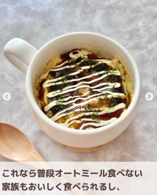 マグカップでできる1人分のレシピ。小学生くらいの子どもなら自分でつくることができるかも!家族全員でオートミールレシピを楽しめそうですね。