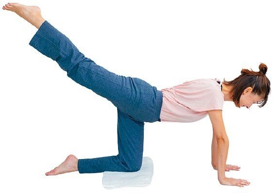 (1)四つんばいになり、片方の脚をなるべく高く上げる。