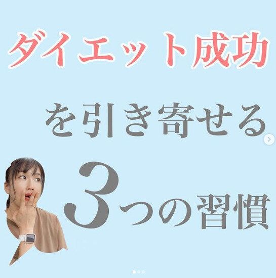 ダイエットの成功を引き寄せる3つの習慣。それは毎日の習慣でした。まずは、今日も動けていることに、おいしくごはんを食べられることに感謝をしましょう。そして、人と比べることをやめましょう。比べることで脳が無意識に自分はできない人間だ…と認識してしまうのだそう。今日も何かひとつでもがんばったことを意識すれば、「私はできる!」と自信をもつことができ、ダイエット成功につながるのだそう。そして最後は、しっかりと睡眠をとり、朝の日差しを浴びましょう。質のいい睡眠はダイエットの基本。自律神経のバランスを整えて、朝、スッキリと起きられるように心がけ、食欲のコントロールをするホルモンを活性化させましょう!