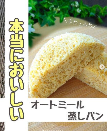 最後に、パン好きさんにもってこいのメニューをご紹介。何度も試行錯誤した結果、本当においしいとokome_kitchenさんも絶賛の「オートミール蒸しパン」です。作り方は、オートミール20g、おからパウダー10g、ラカント大さじ1、ベーキングパウダー小さじ1を軽く混ぜ合わせます。とき卵1個、牛乳60cc、バニラオイル1滴を入れてさらに混ぜます。器をとんとんと打ちつけて気泡を消して、600wの電子レンジで3分半。ふわふわのオートミール蒸しパンのできあがり!