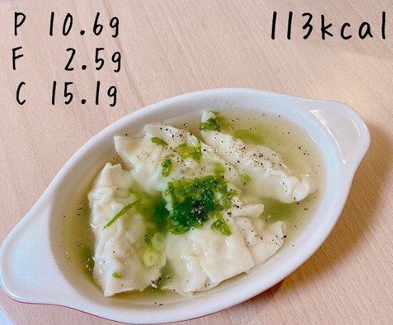 朝、昼としっかりと食べる0102__mmmさんの夜ご飯はいつもひかえめ。こちらある日の晩ごはん。冷凍の餃子を使った手軽な鶏ガラスープです。寒い日にもぴったりな体が温まるスープ。冷凍食品などもうまく使えば、ダイエットレシピも無理なく続けることができるんですね!