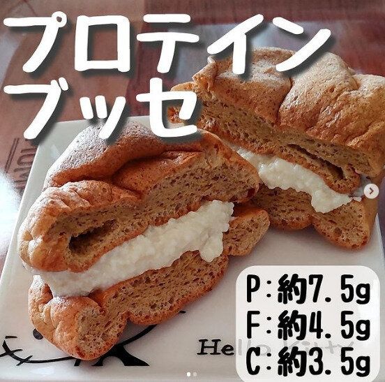 hira_mucchiさんはダイエットスイーツも得意。こちらはとってもおいしそうな「プロテインブッセ」です。つくり方は簡単。ブッセは、卵2個分の卵白に、ラカント(カロリーゼロの自然甘味料)15gを入れて角が立つまで泡立てたら、といた卵黄2個を混ぜます。プロテインを数回に分けて入れたら、170℃のオープンで10分くらい焼くだけ。中には、カッテージチーズにはちみつを混ぜたものをはさめばOK!ダイエット中のスイーツは自分へのごほうび。我慢せずに手づくりすることで、罪悪感なく食べることができますね。