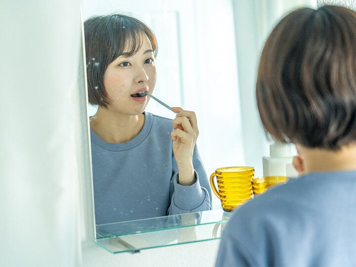 歯磨き方法には、歯と歯茎の境目に毛先を向けて斜め45度に歯ブラシを当てる「バス法」と、毛先を歯に対して90度に当てる「スクラビング法」がおすすめだそうですが、いずれも、注意点は同じ。小刻みに動かし、毛先が潰れない程度の力加減で磨くという2点です。