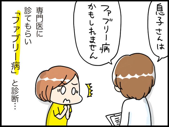 2つめは、「体質だからしかたない」と、見過ごしてしまうケースが多いことがあります。ママも似たような症状を経験している場合、「この子もきっと、私と似た体質なんだわ」と見過ごしてしまいがちです。そのため、お子さんがファブリー病だと診断がついたあとに、ママも同じ病気だとわかるケースは少なくありません(女性の場合、遺伝子に変異があっても、症状がほとんどあらわれないケースもあります)。