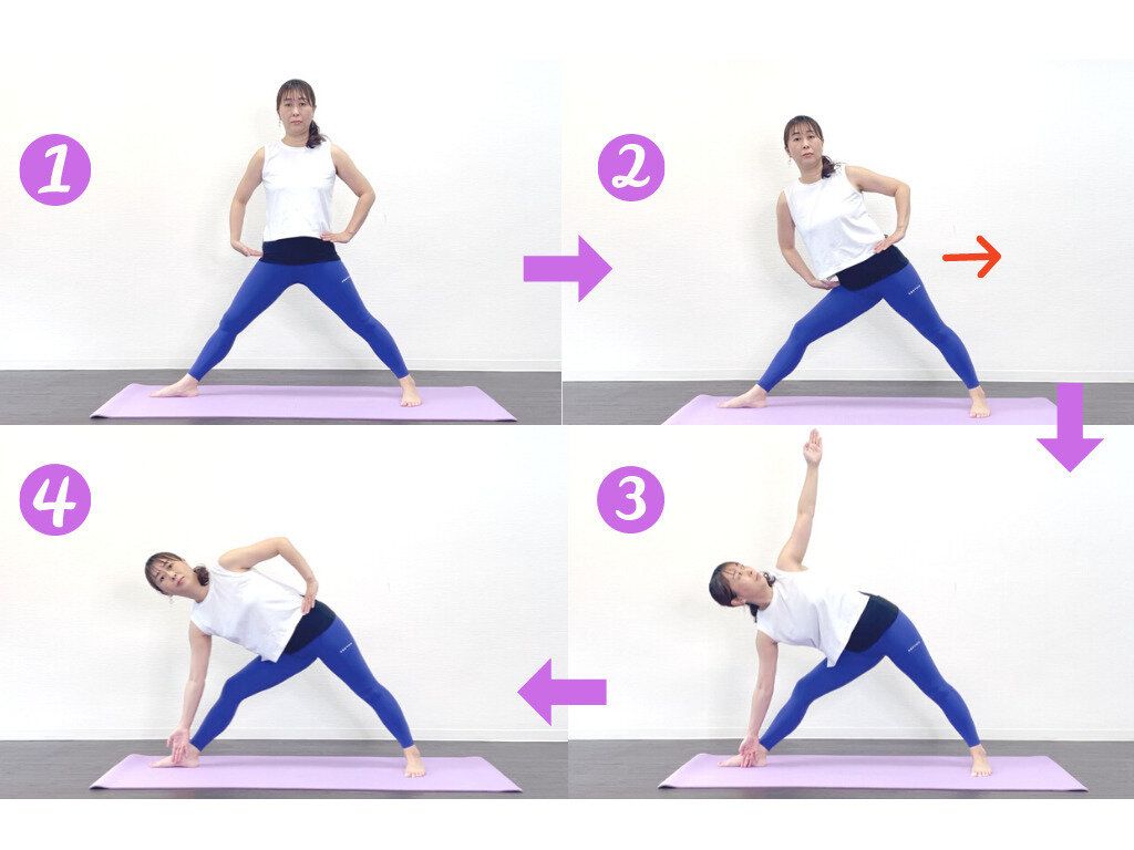 おすすめはヨガのポーズで「三角のポーズ」です。