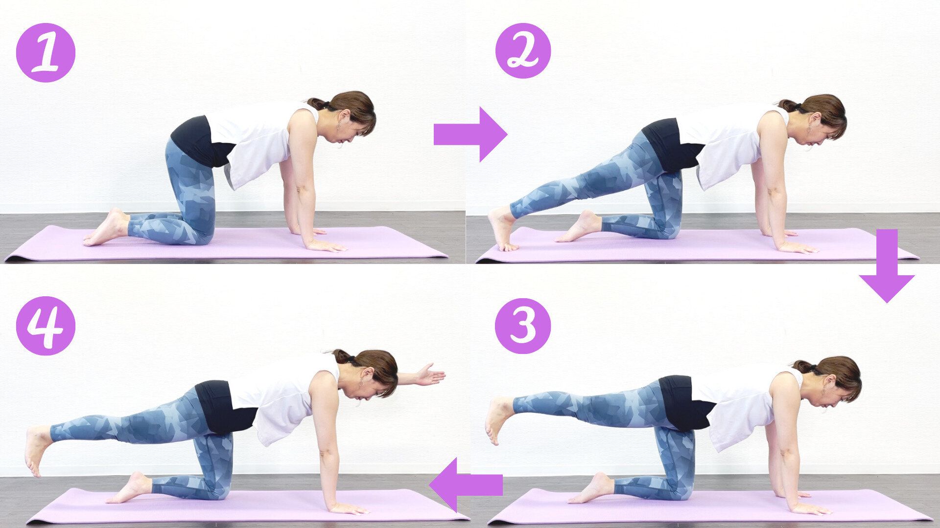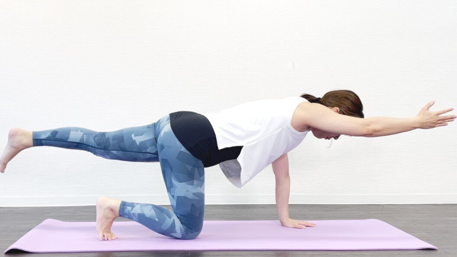 今回ご紹介するのは「猫のバランスポーズ」です。このポーズを行うことで、腹筋群・背筋群・お尻を引き締めることができる万能ポーズ。無理せずにやってみましょう。