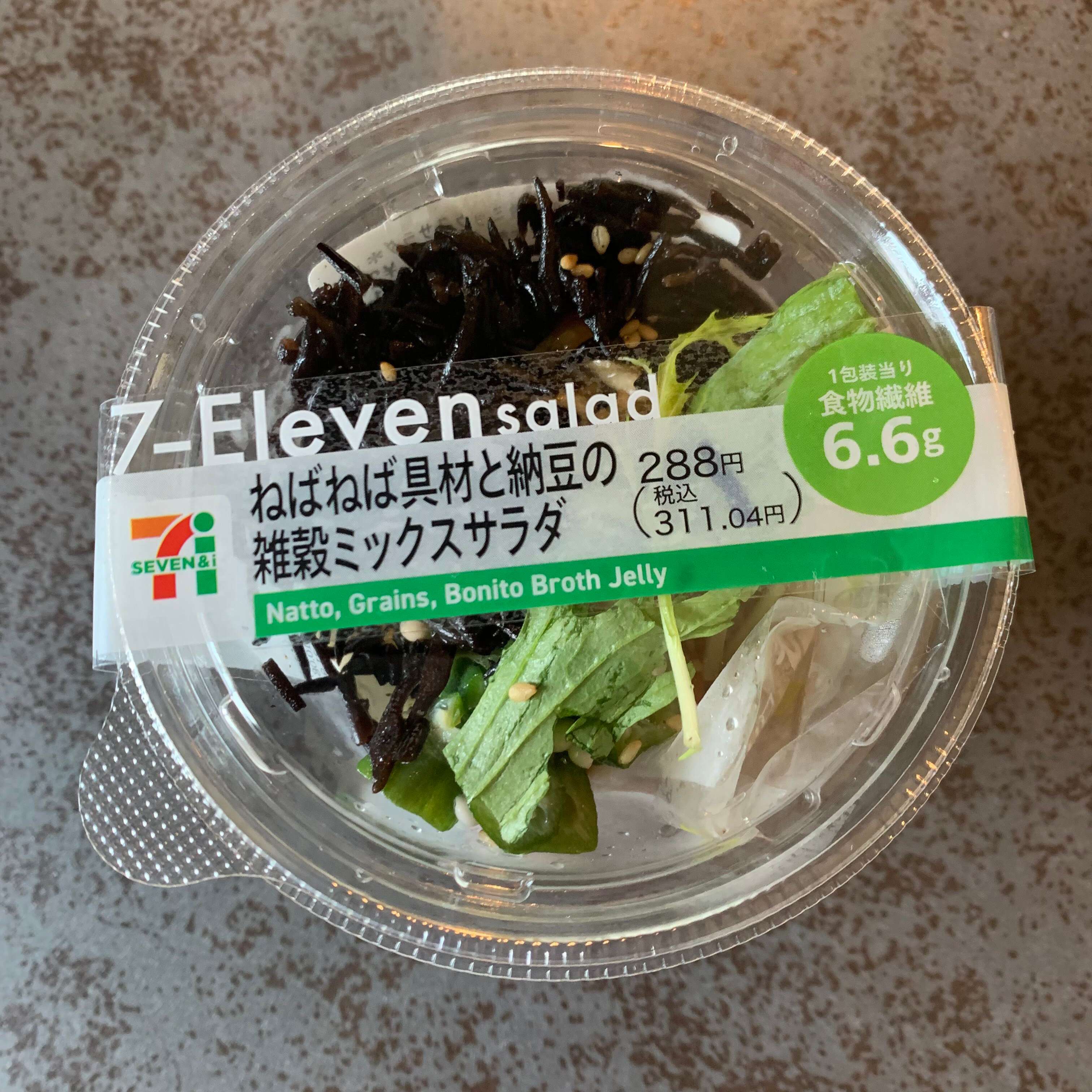 「コンビニサラダは、満足感なし。ドレッシングをかけて成り立つ」という常識を打ち破ってくれたのが、こちらの「ねばねば具材と納豆の雑穀ミックスサラダ」。