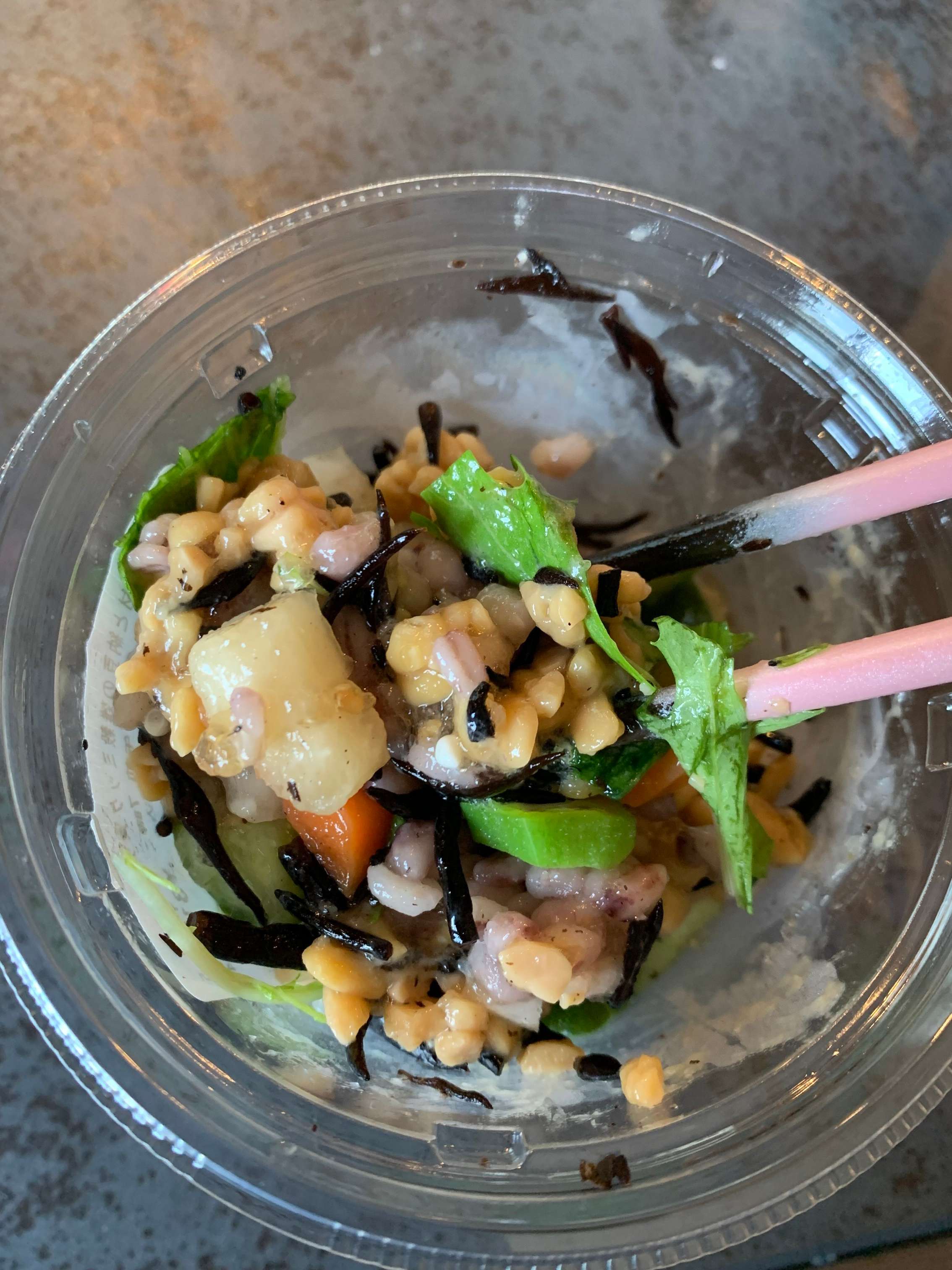 雑穀がカップ半分くらいは入っているので、サラダなのに、物足りなさゼロ!軽く食べたいランチなら、これだけでも大満足です。
