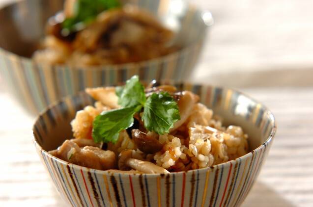おすすめレシピ2:もち麦入りキノコの炊き込みご飯