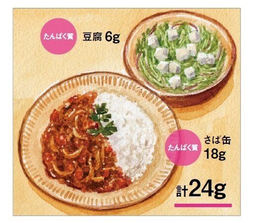 いつものサラダに豆腐をトッピングしたり、たんぱく質が豊富なさば缶をカレーの具として加えたり、”たんぱく質ちょい足し”のひと手間と工夫でたんぱく質不足を補えます。