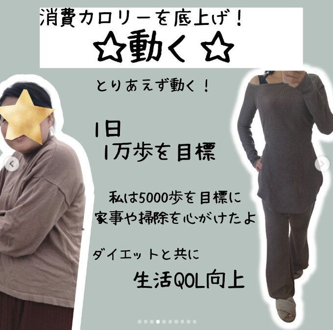 とりあえず動く!これが目標でした。1日1万歩を目指して、子どもとの散歩のほかにも、家事や掃除をがんばって行うことも心がけていたと言います。ダイエットにもなるし、家事や掃除もはかどるし、生活の質も向上したのだそうですよ!