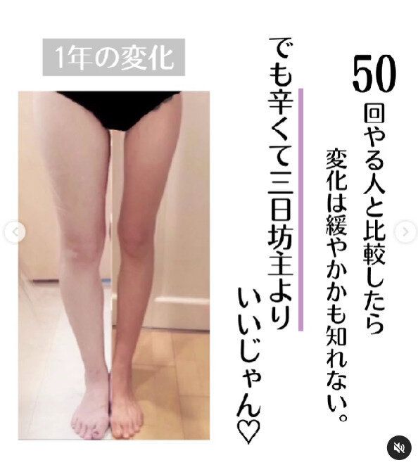 自分ができるペースで続けるということは、体の変化もゆるやかかもしれません。でも継続することが何よりも大切だと言います。写真を見てください!1年かけてここまでの変化をもたらしたのです。