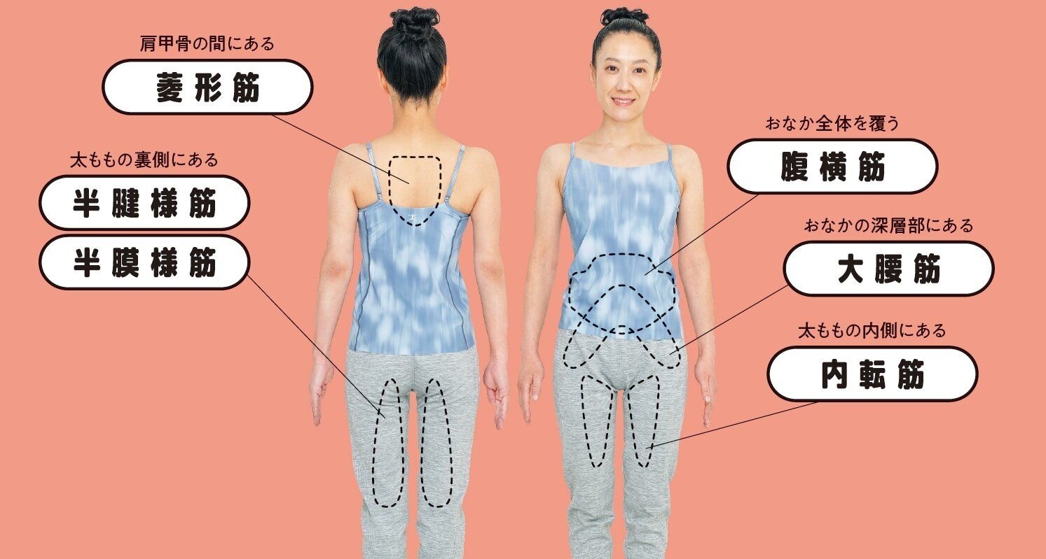 ミトコンドリアを活性化するには、姿勢の維持に使われる5カ所の筋肉がキモ!ふだんの生活で縮みがちなこれらの筋肉を伸ばすことで、関節が動きやすくなり、基礎代謝がアップします。