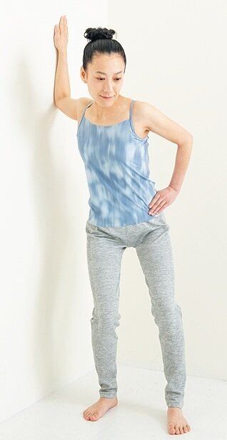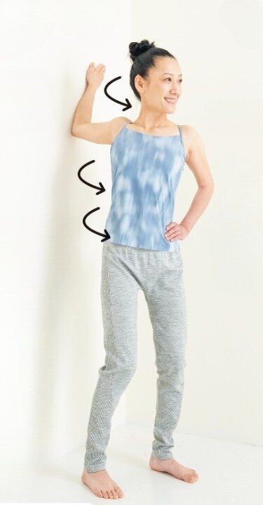 - 2 壁につけた腕を後ろに少しねじる