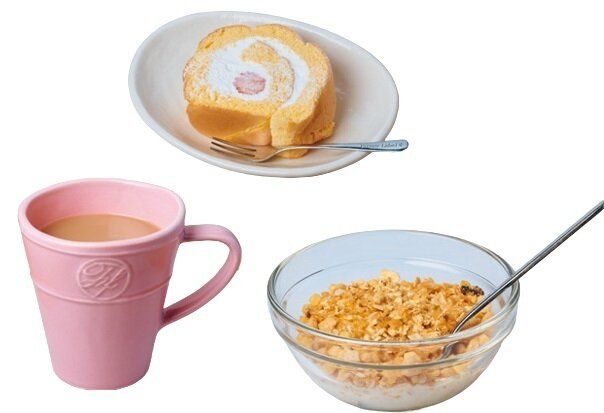 「朝に食べた分は日中に消費できるので、朝は好き放題食べてます。ケーキとミルクティー、グラノーラを一度にとっちゃうのも朝ならアリ(笑)」。
