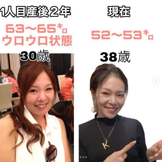 30歳と38歳のときの写真。肩まわりの厚みがまったくちがいます。そしてフェイスラインがくっきり!肌ツヤまでよくなっていることにも驚きですね。