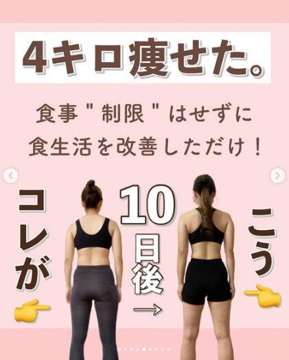 これが10日間の食生活の改善の成果。4kgの減量に成功したのです。ウエストまわりの変化がすごいですよね。背中もすっきりしているのがわかります。