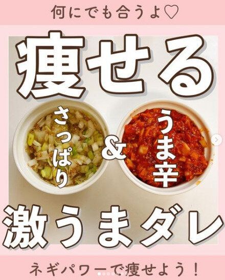 【たっぷりネギのうま辛サムジャン風ダレ】…長ネギ1本、味噌大さじ3、コチュジャン大さじ2、砂糖(はちみつ)大さじ1、ごま油大さじ1/2、白ゴマ大さじ1、チューブにんにく小さじ1