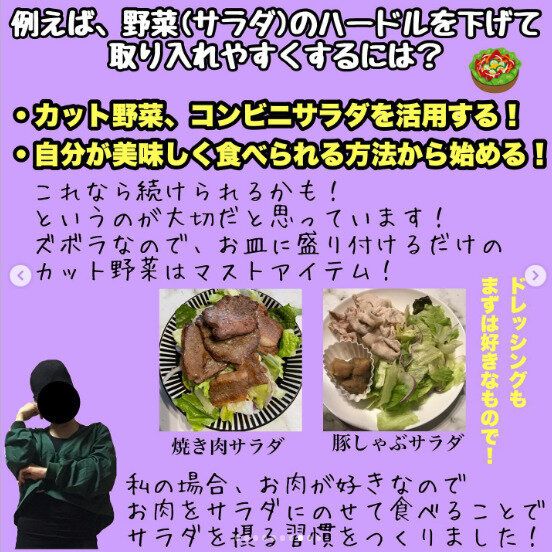 がっつりと食べることが大好きだったyurimama_dietさん、突然ヘルシーなレシピばかりなんて無理!と自己分析し、まずは苦手なもののハードルを下げることから始めました。