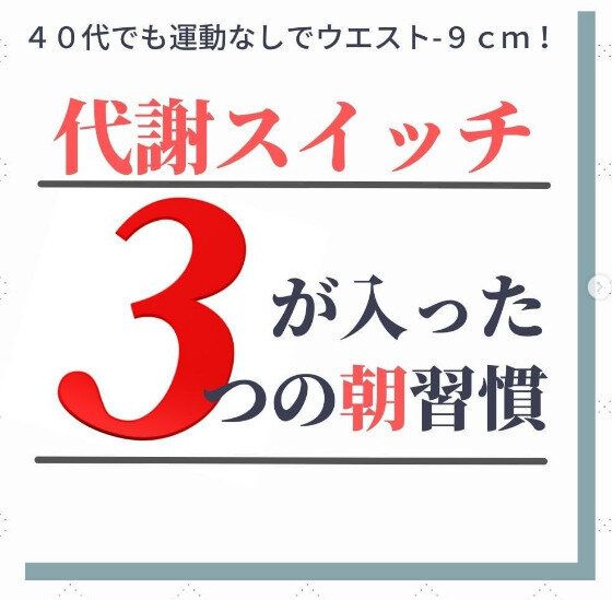 hanaeri42さんは、朝の習慣を変えたことで代謝をあげることができたのだそう。そのコツは3つ。まずは、朝にコップ1杯の水を飲むこと。1日1.2Lから1.5Lの水分摂取が必要と言われていますが、水を飲むことが苦手な人も多いですよね。だからこそ、朝にコップ1杯をゴクゴクと飲むようにしました。朝にしっかりと飲めば、そのあと自然と水が飲みやすくなり飲める量も増えてきたそう。そして次は朝日を浴びること。育児ストレスから、夜中にこっそりチョコを食べて激太りしたというhanaeri42さん。早起きしてベランダに出ると深呼吸を3回するようにしました。すると夜は自然と眠くなり、夜中の間食が減ったのだそう。そして最後は卵を食べること。以前のhanaeri42さんの朝食は、パンと豆乳入りのグリーンスムージーでした。ヘルシーそうですが、じつはパンと植物性たんぱく質の組み合わせは、ダイエット的にはあまりよくないそう。パンに野菜と卵をつけることによって、代謝がより上がる組み合わせになるのだそうですよ。