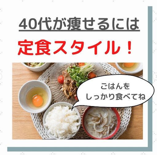 がんばってダイエットをしているけれど、40代以降のダイエットは体調の変化もあり結果がでない…という人も多いですよね。hanaeri42さんいわく、40代こそお米を食べることが大切なのだそう。お米は低脂質なうえ、タンパク質も含まれています。また満腹感があり腹持ちもよく、ダイエットの強い味方なのです。おすすめは写真のような定食スタイル。ごはん、汁物、メインのおかずとボリュームもたっぷり。これなら心も体も大満足ですね!