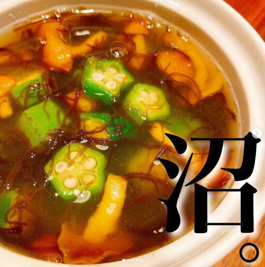 こちらは「おいしく腸活!もずくのとろとろスープ」です。深めの鍋に水4カップ、なめこ1袋、もずく200g、切ったオクラ5~6本を入れて、吹きこぼれないように注意しながら火が通るまで加熱します。火を止めて、鶏がらスープの素大さじ1、しょうゆ小さじ1~2を入れたらできあがり!たっぷりのもずく、きのこにオクラ。腸活にもぴったりですね。朝ごはんにトロトロスープで体を温めれば今日も元気に乗り越えられそう!