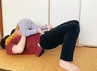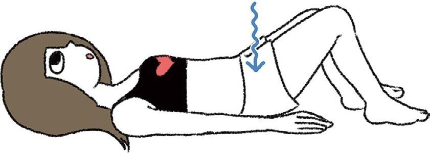 - 1 あおむけになりひざを立て、おしりに力を入れ持ち上げる