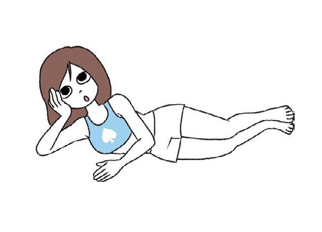 - 1 横向きに寝そべり両足が「くの字」になるようにひざを曲げる