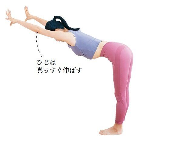 「おしり筋伸ばしは、伸ばすのと反対方向に押さえる力も働かせるので筋トレ効果も。お腹、おしり、下半身が鍛えられ姿勢も改善」。