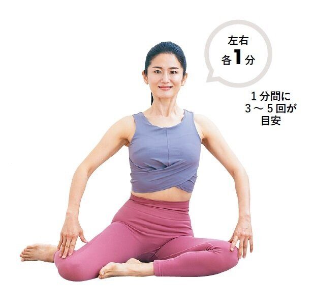 「股関節を動かすことで骨盤が締まり、呼吸がしやすくなってお腹の深部の筋肉が使われるようになる。引き締まってくびれも出現」。