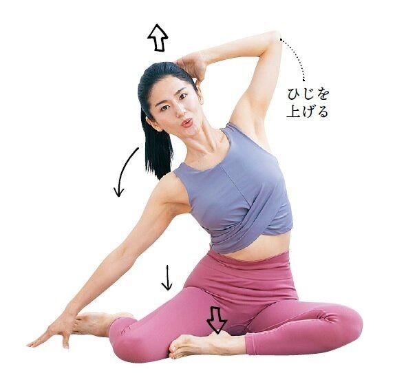 「体の土台であるおしりの筋肉を伸ばすと骨盤のゆがみが改善し、骨格がきれいに。すると怠けていた筋肉が活性化してやせやすく」。