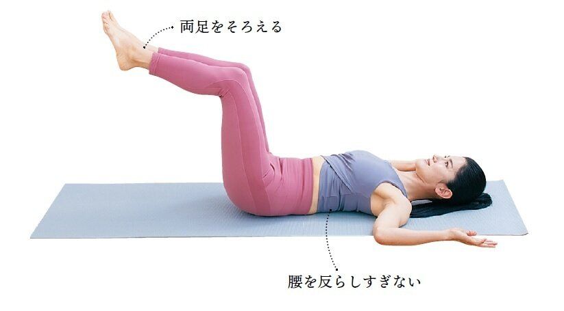 • 1 あおむけになり両足を浮かせる