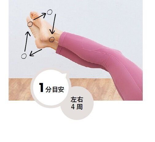 足で宙に四角を描くことで、下腹全体をトレーニング。ぽっこり下っ腹に引き締め効果が。