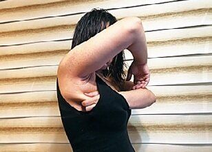 • 1 壁に手をつき上体を起こす