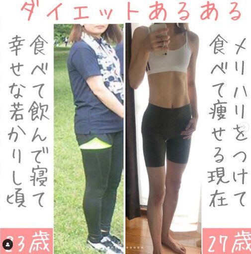 こちらがhikari_bodymakeさんのビフォーアフターの写真。栄養バランスを重視した食事管理とトレーニング動画などを参考にしながらの自宅トレーニングだけで、ここまでの美ボディを手に入れたのです。