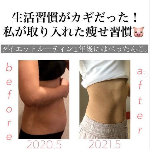 hikari_bodymakeさんいわく、結果を出せたのは生活習慣の改善がとても大きかったのだとか。トレーニングも重要ですが、まずは太りやすい行動を変えること。好きなものを飲んでいたのを白湯に変える。だらだらと食べていたおやつも食べる時間を決める、シャワーではなく湯船につかる、朝と昼はしっかり食べて夜は少なめなど。どれもむずかしいものではなく、今日から始められることばかり。だからこそ継続し、いつのまにか習慣にすることができたのですね。
