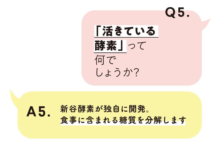 「極力熱をかけない、“麹菌バイオ発酵活性法”により、酵素本来の働きを保ったまま製品化。食事に含まれる糖質を分解します」