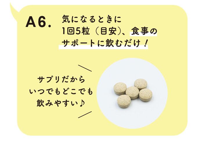 「通常の食事の補助として1回5粒、1日1~3回を目安に飲むだけでOK。楽ちんだから続きます♪小粒で飲みやすいのも◎」(小長井さん)