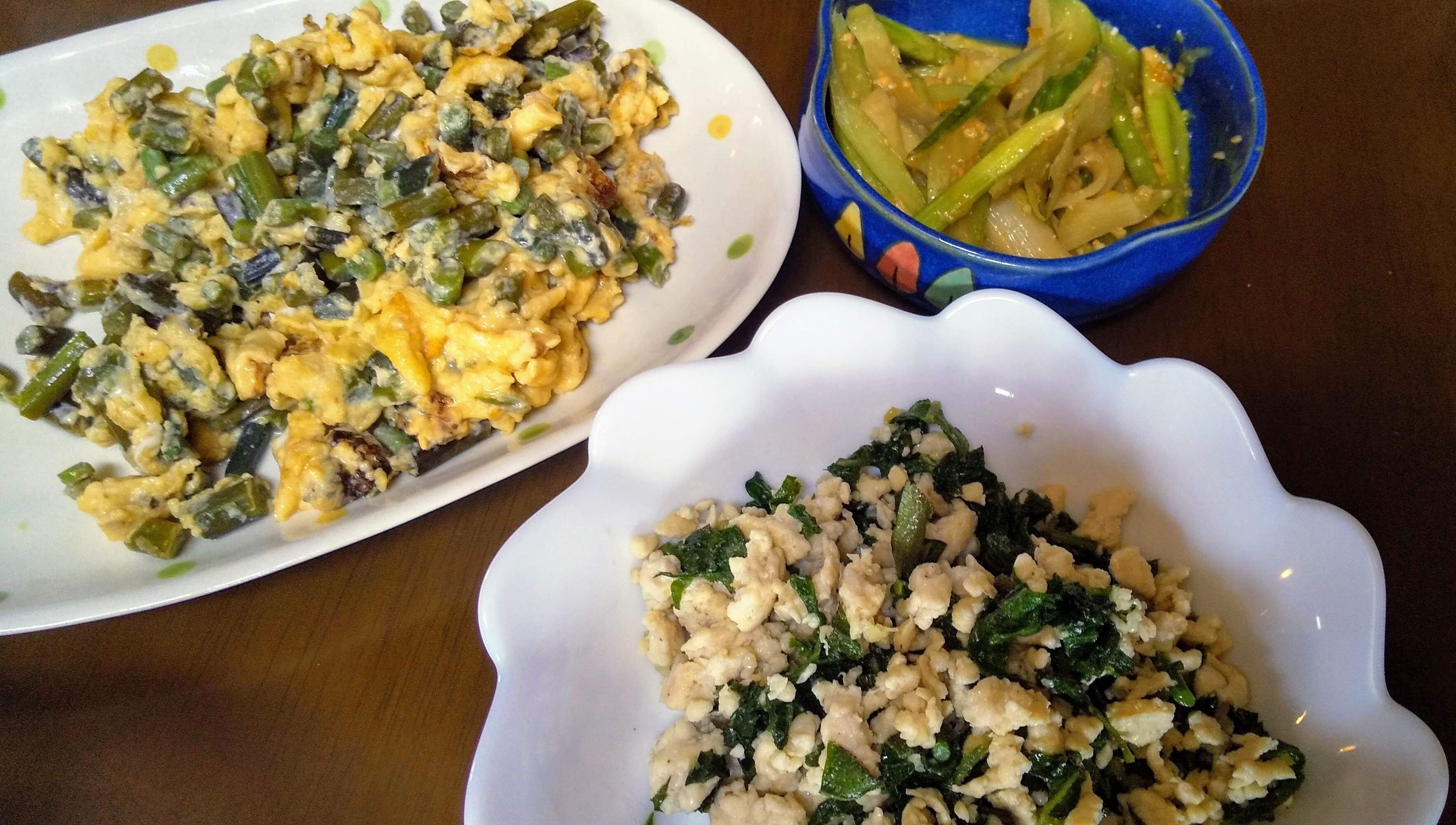 また、天ぷらに向かないアクや独特香りが強いわらびやうどの葉などは、下処理をしてから卵と炒めたり、そぼろと和えたりして食べたりしています。