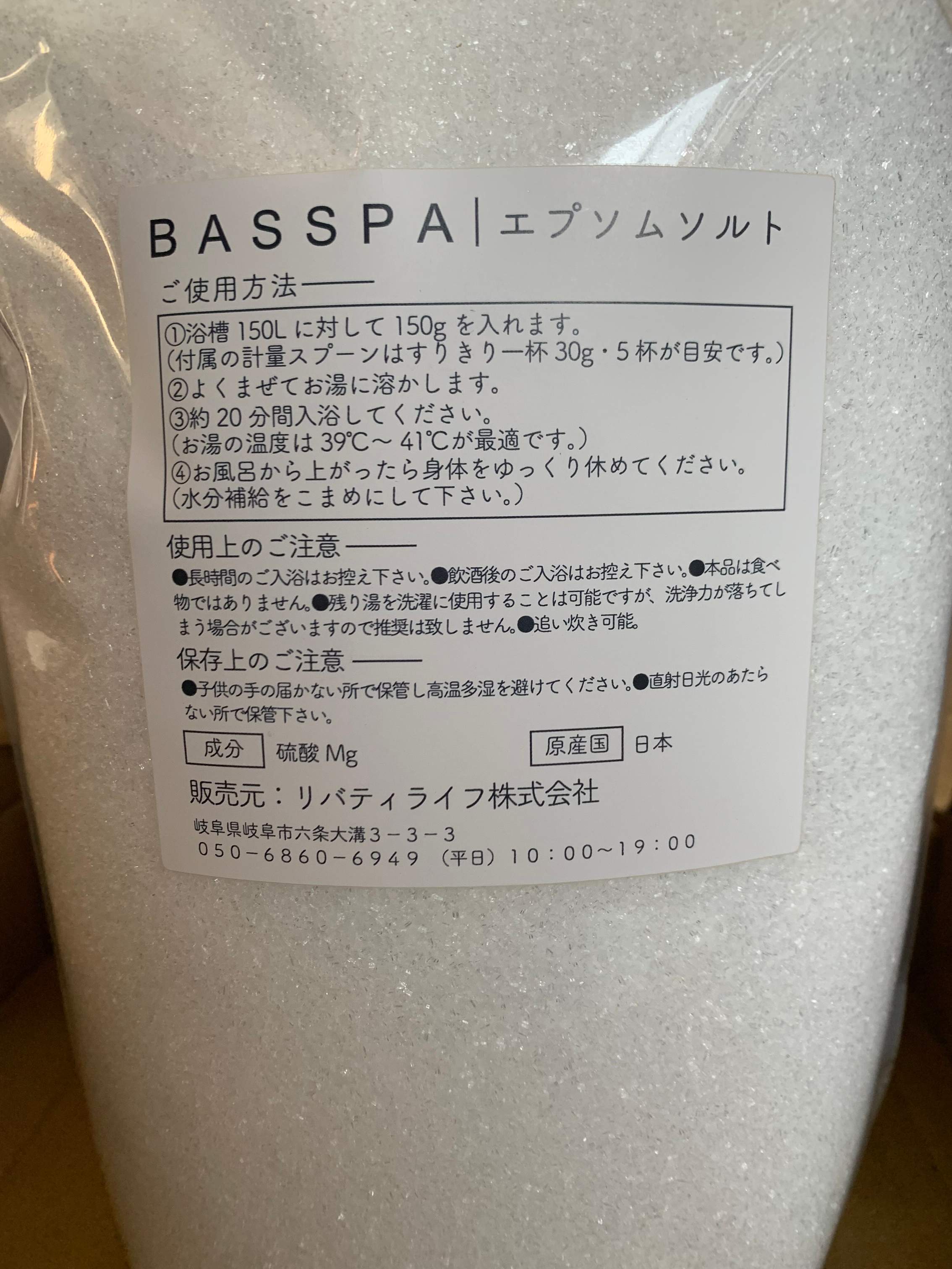 見た目は普通のバスソルトといった感じですが、3kgで1,690円(税込)とかなりコスパよし。