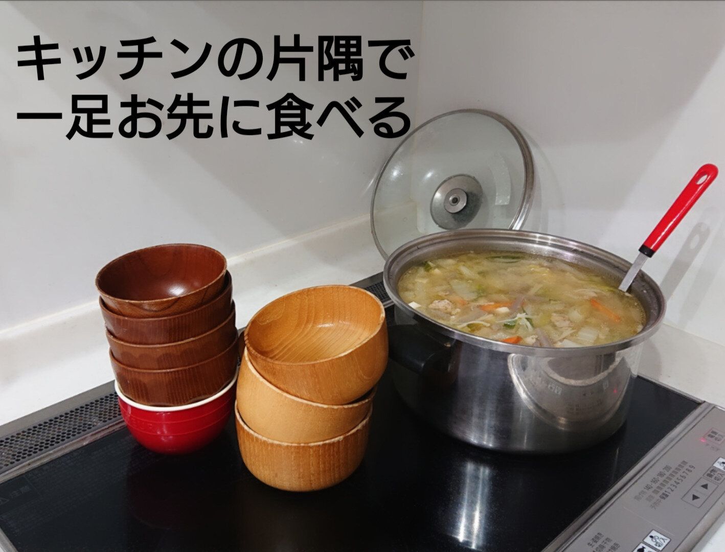 私だけ、キッチンの片隅で一人サササッと食事を済ませます。