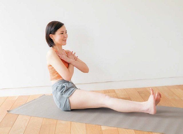 股関節を柔らかくする方法として、がっせき前屈のポーズがあります。ゆっくり息をしながら、行ってみましょう。