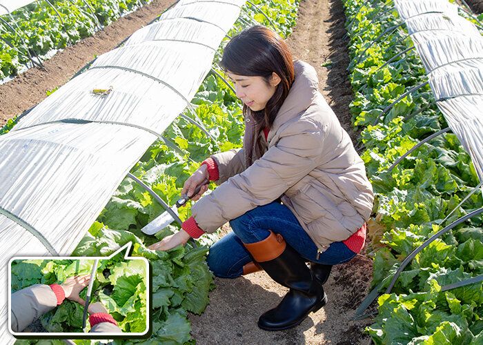 また、出荷するときに、例えばレタスなら、レタスのオシリの部分を一つ一つきちんと拭くなど、きれいにしてから出荷するように心がけています。やっぱり、おいしい野菜といっても、虫がついていたり葉が茶色くなっていたりすると買ってはくれないと思うんですよね…」
