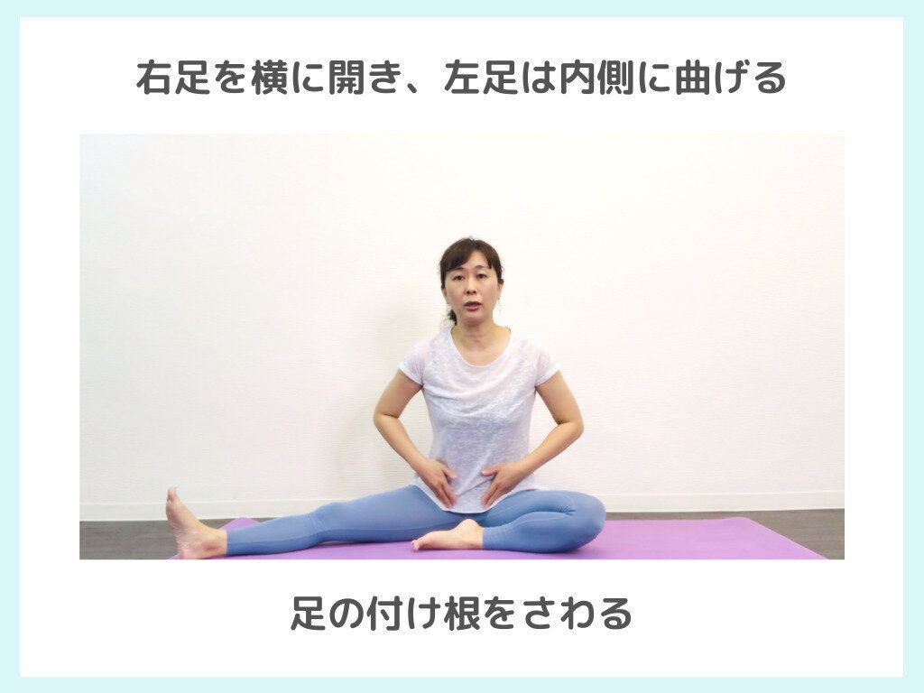 足の付け根をさわっておくと、足の付け根からカラダを動かすことができ、より深くストレッチに入ることができます。
