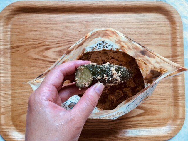 熟成済のぬか床がチャック付きのスタンドパックに入っているので、買ったその日からすぐに野菜を漬けることができます。きゅうりは一晩、なすは二晩くらいで美味しく漬かります。