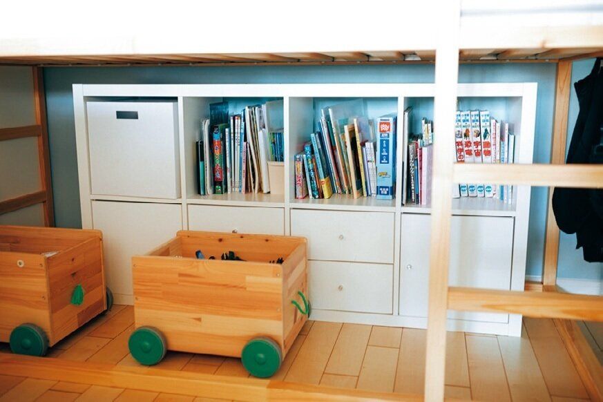 進級時に学校の物を入れ替えるタイミングで、おもちゃや本も見直し。もう遊ばない物、使っていない物は知人に譲るなどして、ベッド下の収納ボックスに収まる量をキープします。