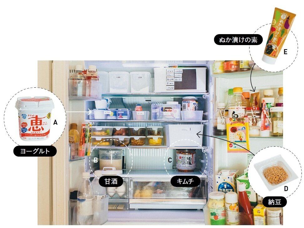 冷蔵室の手が届きやすい場所に菌活食材をセット。