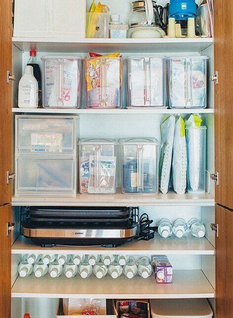 「発酵食品が大好きで、ふだんから腸活や菌活を意識。忙しくて運動する時間がないのでながらエクササイズを習慣にしています」。食事や適度な運動で老廃物をためない体づくりをしているいとうさんは、家にたまりやすい老廃物(=いらない物)の対策も万全。たまりがちな物はラクに捨てられる方法を工夫し、食品やコスメ、服はすべてを見渡せる収納で死蔵品ゼロを徹底。美容もおしゃれも、年齢や忙しさを理由にして手を抜きたくないから、収納を工夫して時間を生み出しています。
