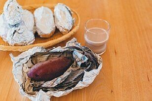 - おやつの定番は、お通じがよくなる焼きいも&ミルク味の飲み物